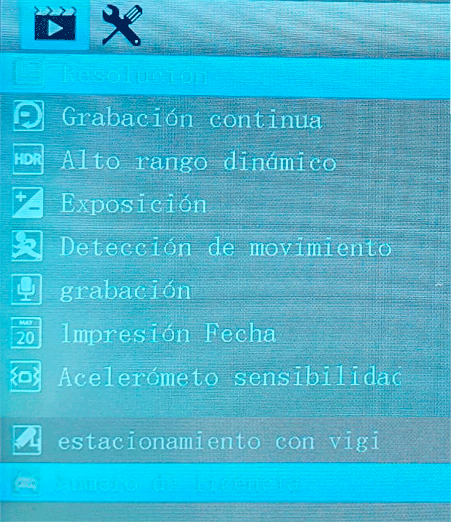 -Acelerómetro sensibilidad- G SENSOR: Modifica la intensidad de tu sensor de gravedad para que la pantalla solo guarde los videos importantes y no los que reconozca como impactos por baches (si vives en una zona donde el camino tiene muchos baches lo recomendable es desactivar esta función ya que la memoria suele llenarse muy rápido debido a que la pantalla bloquea todos los videos por que los reconoce como si hubiese habido un choque y por tanto no se pueden eliminar hasta que se inserte la tarjeta SD en una PC.
