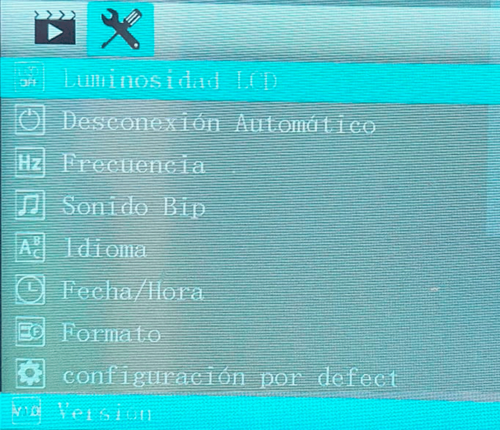 – Luminosidad LCD: Modifica esta función en caso de que quieras que tu pantalla se suspenda al cabo de unos minutos de estar funcionando, se puede modificar de 30 segundos hasta los 2 minutos.